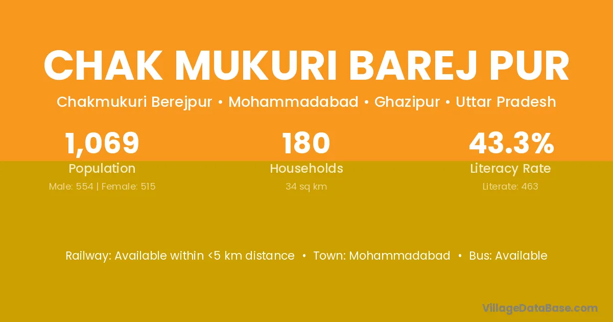 Chak Mukuri Barej Pur village has a total population of 1,069 people, of which 554 are males and 515 are females.