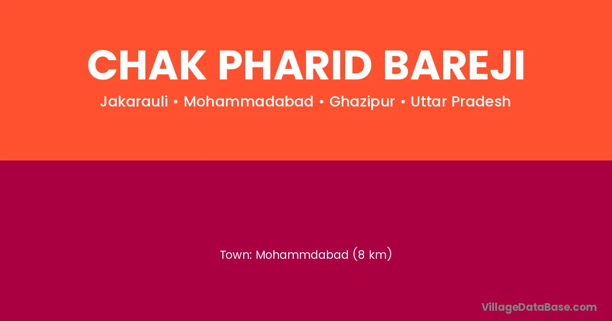 Mohammdabad (8 km) is the nearest town to Chak Pharid Bareji village for major economic activities and is located approximately 8 km away.