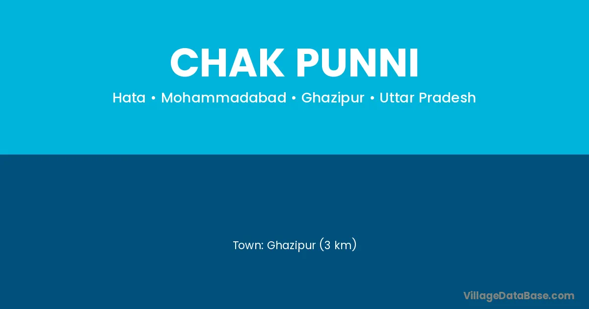 Ghazipur (3 km) is the nearest town to Chak Punni village for major economic activities and is located approximately 3 km away.