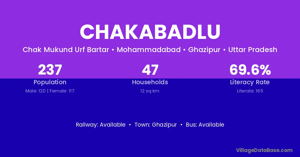 Ghazipur is the nearest town to Chakabadlu village for major economic activities