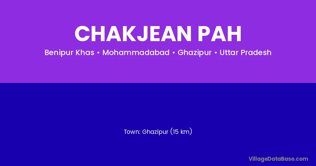 Ghazipur (15 km) is the nearest town to Chakjean Pah village for major economic activities and is located approximately 15 km away.