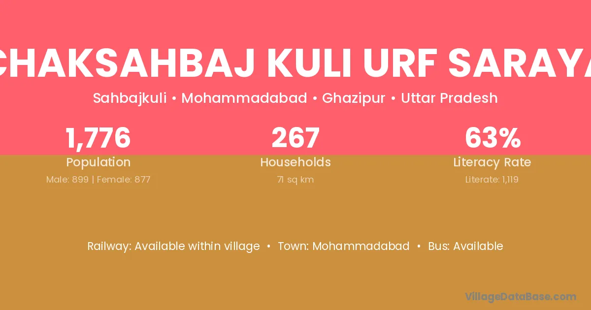 Chaksahbaj Kuli Urf Saraya village has a total population of 1,776 people, of which 899 are males and 877 are females.