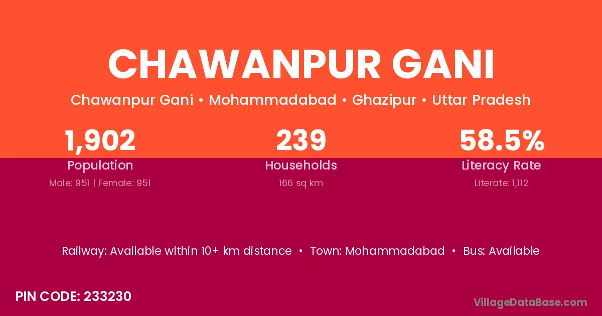 According to Census 2011 information, the village code of Chawanpur Gani village is 233230.