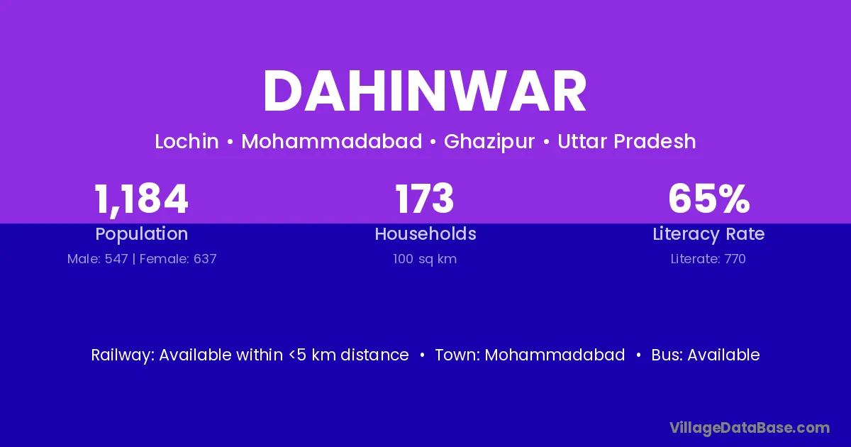 Mohammadabad is the nearest town to Dahinwar village for major economic activities