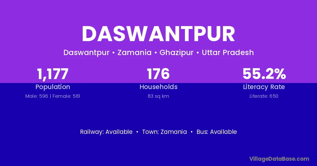 Ghazipur (9 km) is the nearest town to Daswantpur village for major economic activities and is located approximately 9 km away.