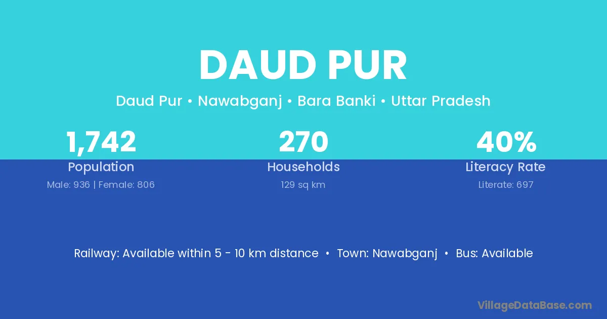 Ghazipur (1 km) is the nearest town to Daud Pur village for major economic activities and is located approximately 1 km away.