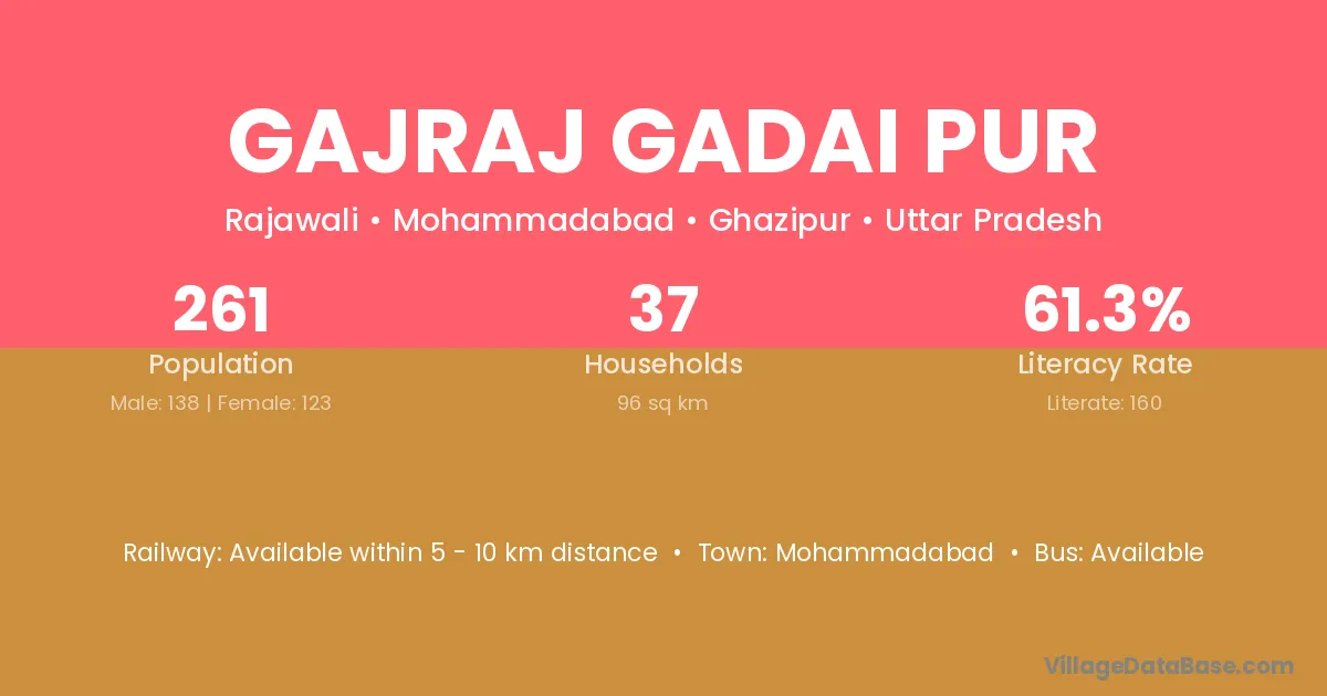 Gajraj Gadai Pur village has a total population of 261 people, of which 138 are males and 123 are females.