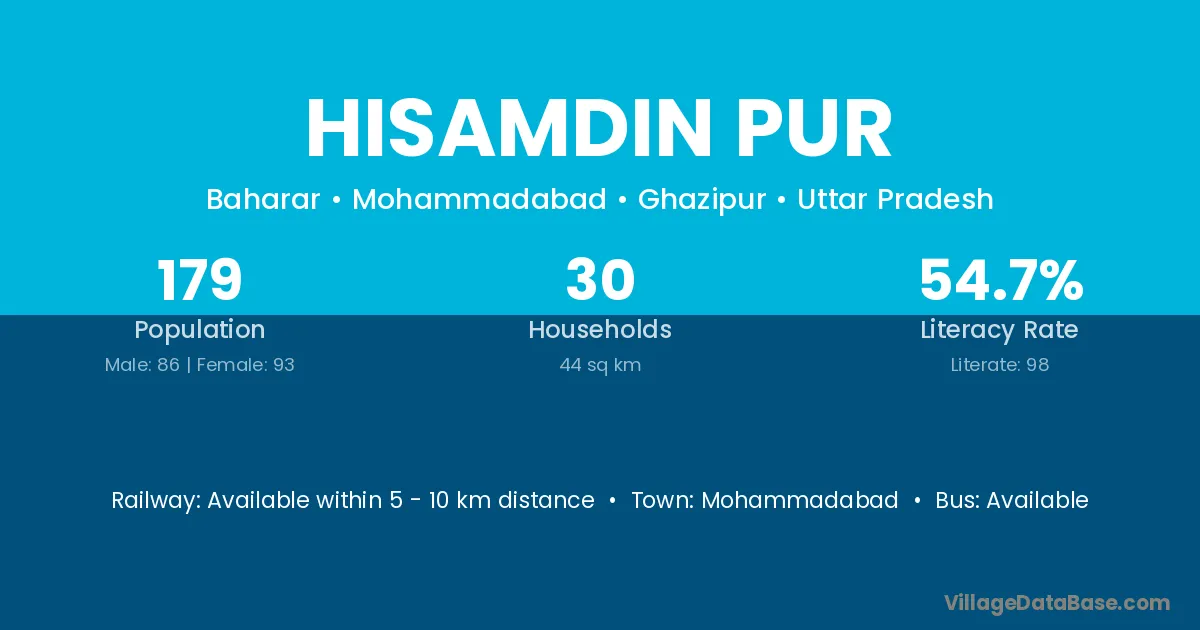 Hisamdin Pur village has a total population of 179 people, of which 86 are males and 93 are females.