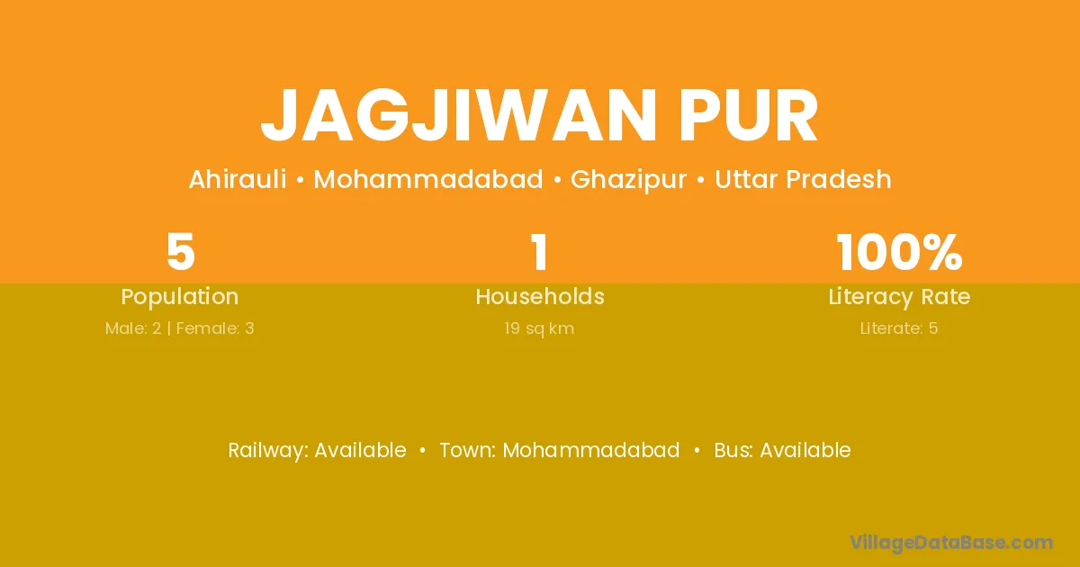 Jagjiwan Pur village has a total population of 5 people, of which 2 are males and 3 are females.