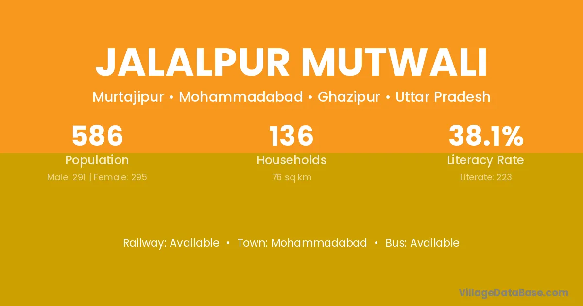 Jalalpur Mutwali village has a total population of 586 people, of which 291 are males and 295 are females.