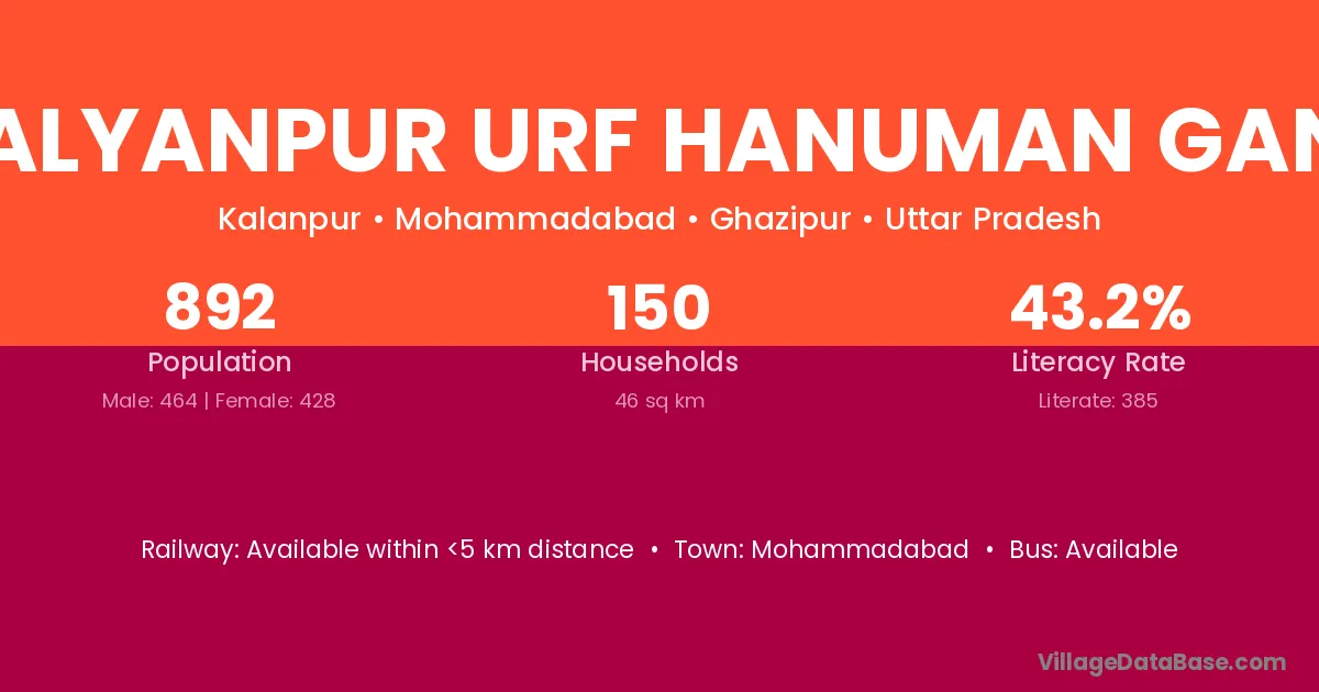 Kalyanpur Urf Hanuman Ganj village has a total population of 892 people, of which 464 are males and 428 are females.