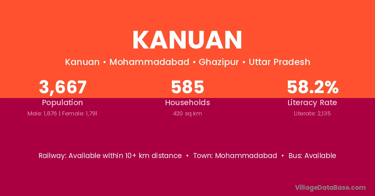 Kanuan village has a total population of 3,667 people, of which 1,876 are males and 1,791 are females.