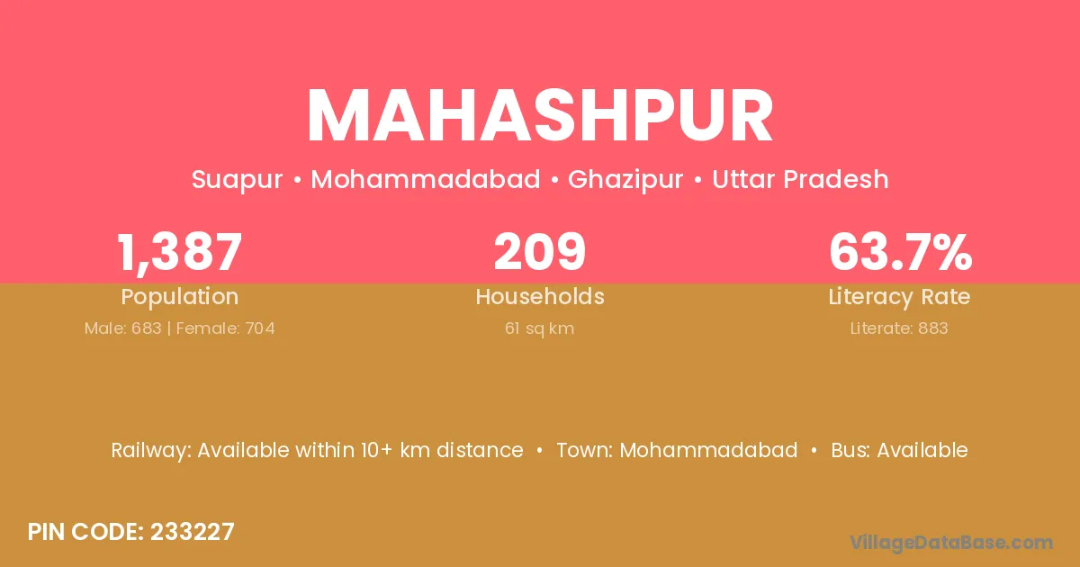Mohammadabad is the nearest town to Mahashpur village for major economic activities