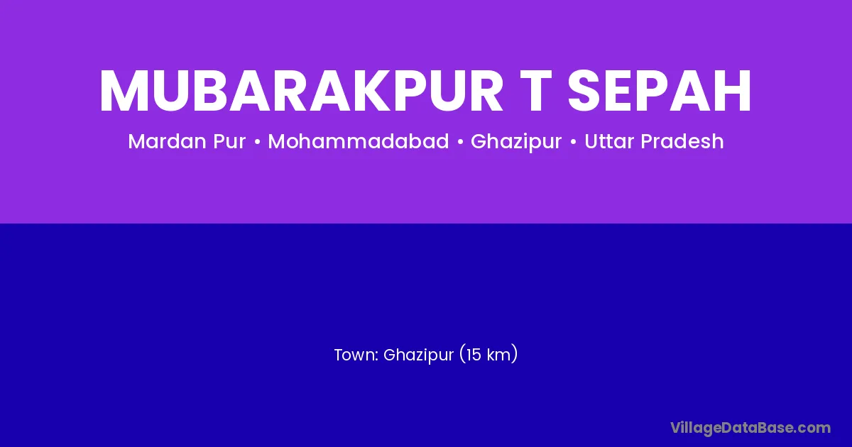 Ghazipur (15 km) is the nearest town to Mubarakpur T Sepah village for major economic activities and is located approximately 15 km away.