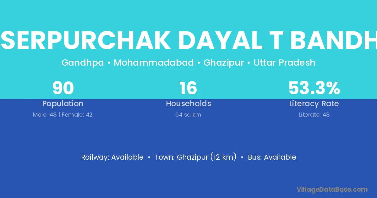 Ghazipur (12 km) is the nearest town to Naserpurchak Dayal T Bandhae village for major economic activities and is located approximately 12 km away.