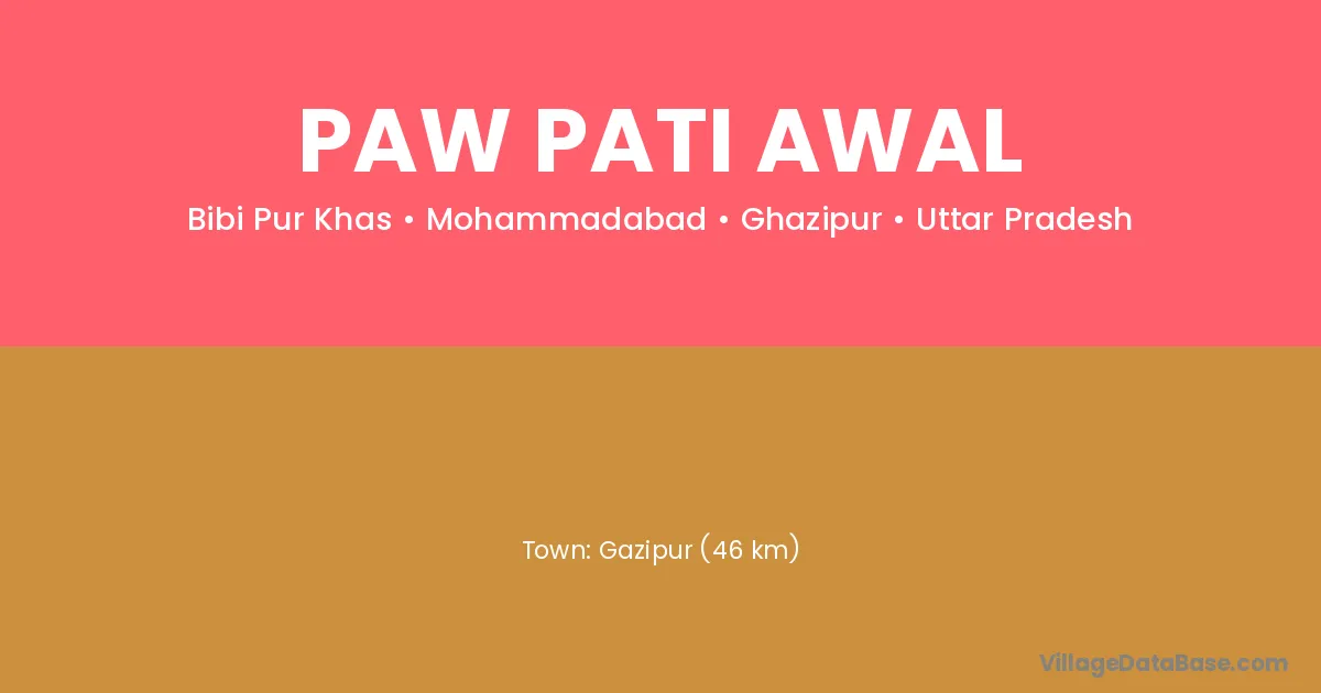 Gazipur (46 km) is the nearest town to Paw Pati Awal village for major economic activities and is located approximately 46 km away.