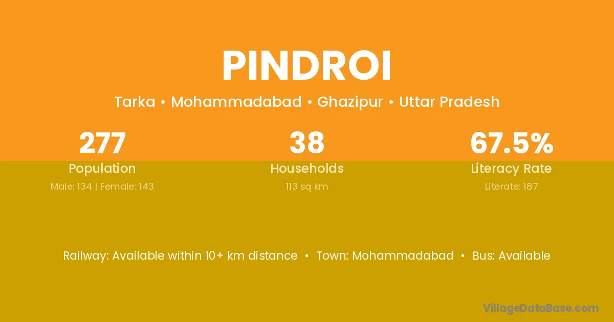 Mohammadabad is the nearest town to Pindroi village for major economic activities