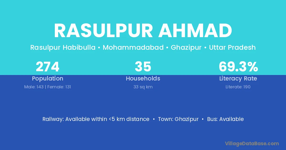 Ghazipur is the nearest town to Rasulpur Ahmad village for major economic activities