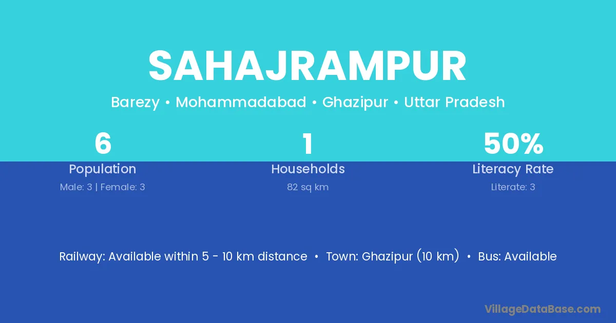 Ghazipur (10 km) is the nearest town to Sahajrampur village for major economic activities and is located approximately 10 km away.