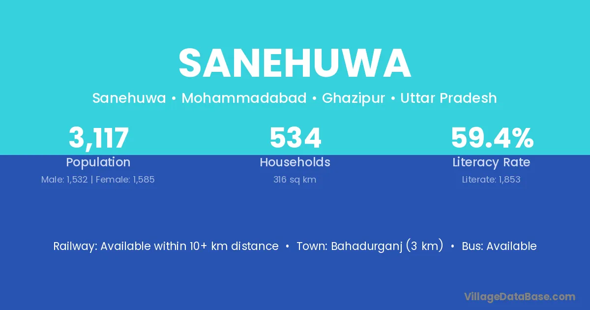 Bahadurganj (3 km) is the nearest town to Sanehuwa village for major economic activities and is located approximately 3 km away.