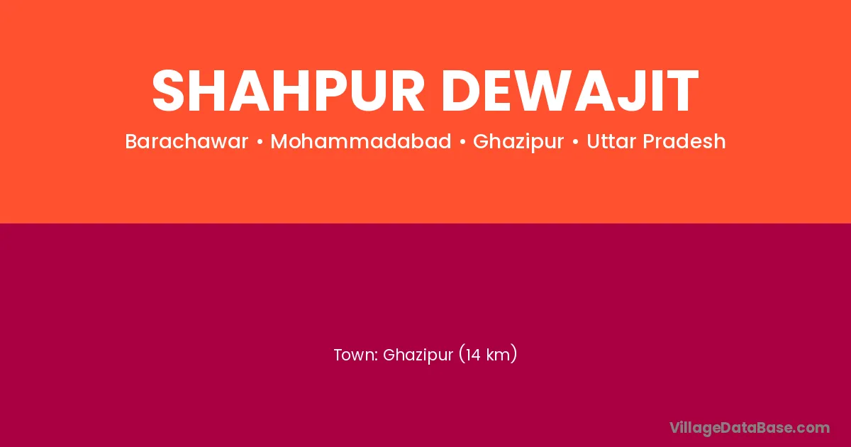 Ghazipur (14 km) is the nearest town to Shahpur Dewajit village for major economic activities and is located approximately 14 km away.