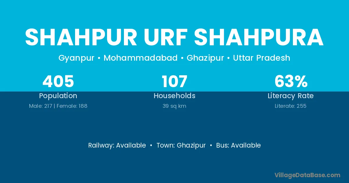 Shahpur Urf Shahpura village has a total population of 405 people, of which 217 are males and 188 are females.