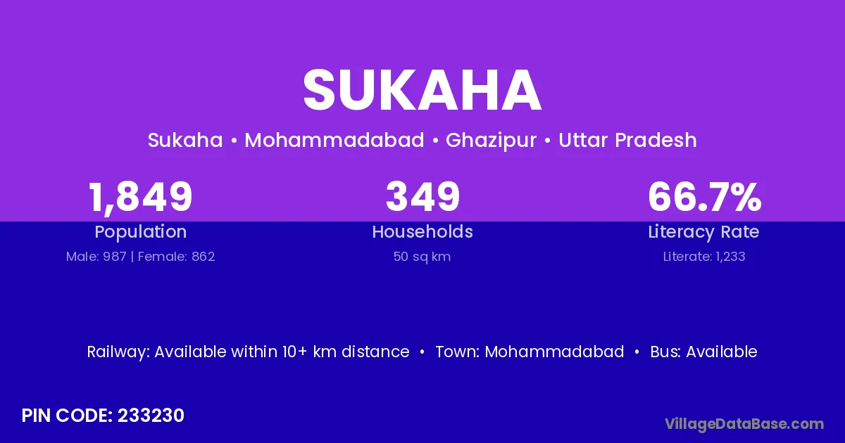 Sukaha village is located in the Mohammadabad Tehsil of the Ghazipur district in Uttar Pradesh .