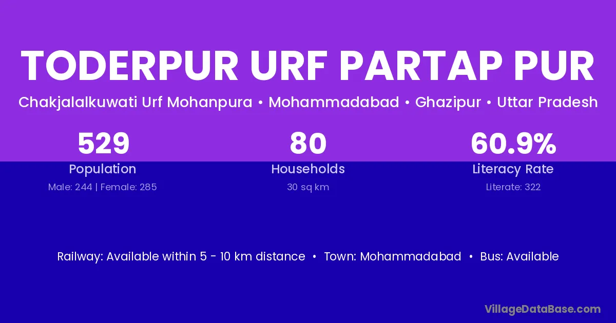 Mohammadabad is the nearest town to Toderpur Urf Partap Pur village for major economic activities