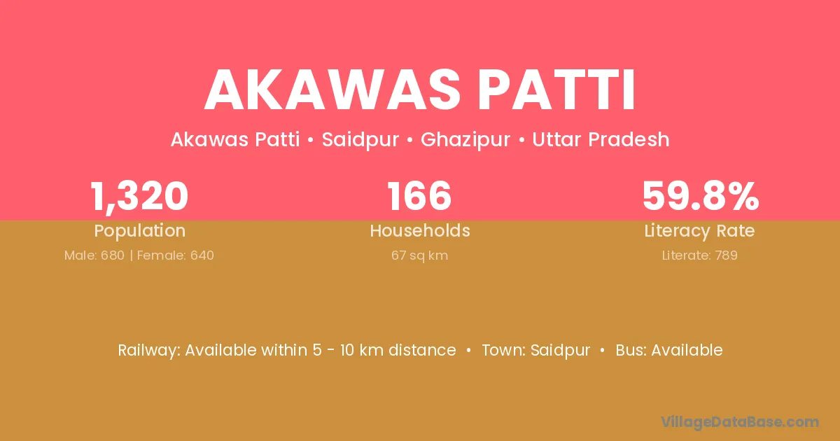 Akawas Patti village has a total population of 1,320 people, of which 680 are males and 640 are females.