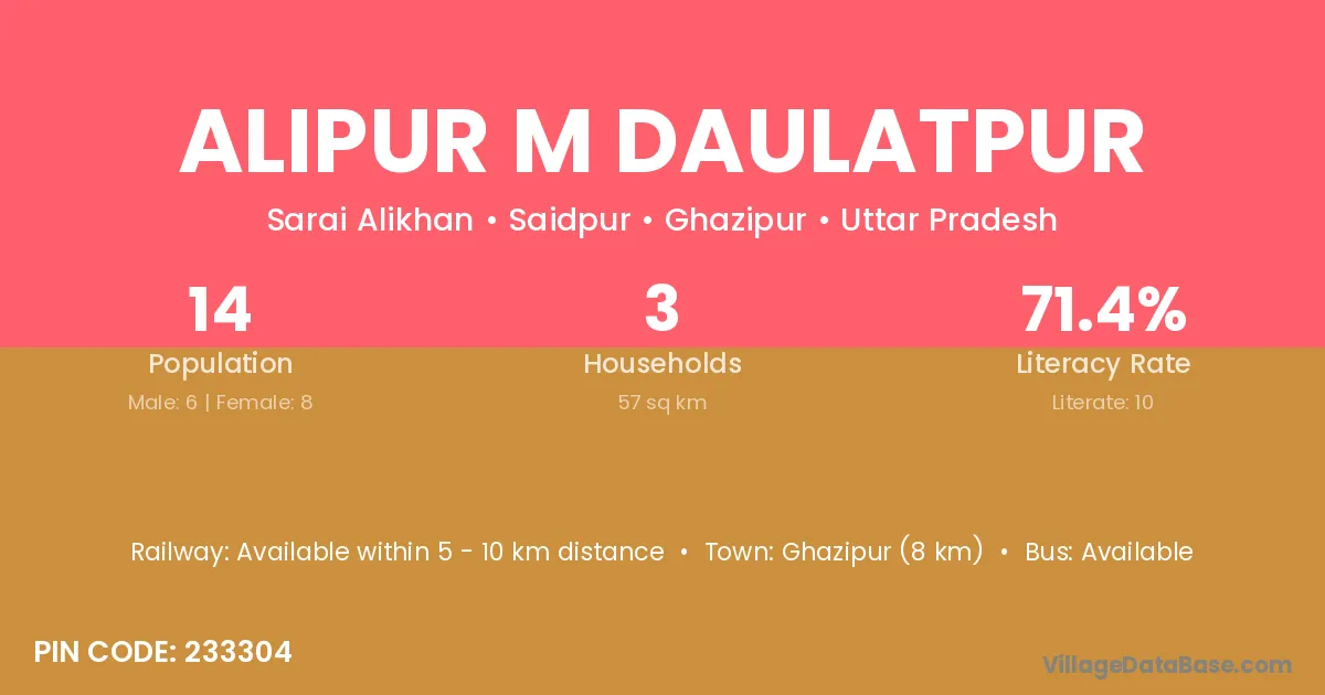 Alipur M Daulatpur village has a total population of 14 people, of which 6 are males and 8 are females.