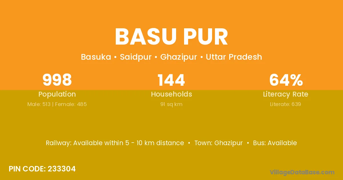 Ghazipur is the nearest town to Basu Pur village for major economic activities