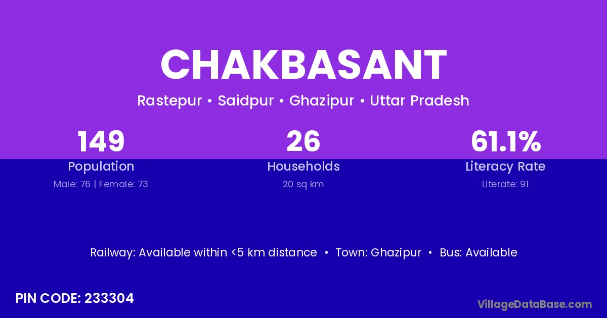Ghazipur is the nearest town to Chakbasant village for major economic activities