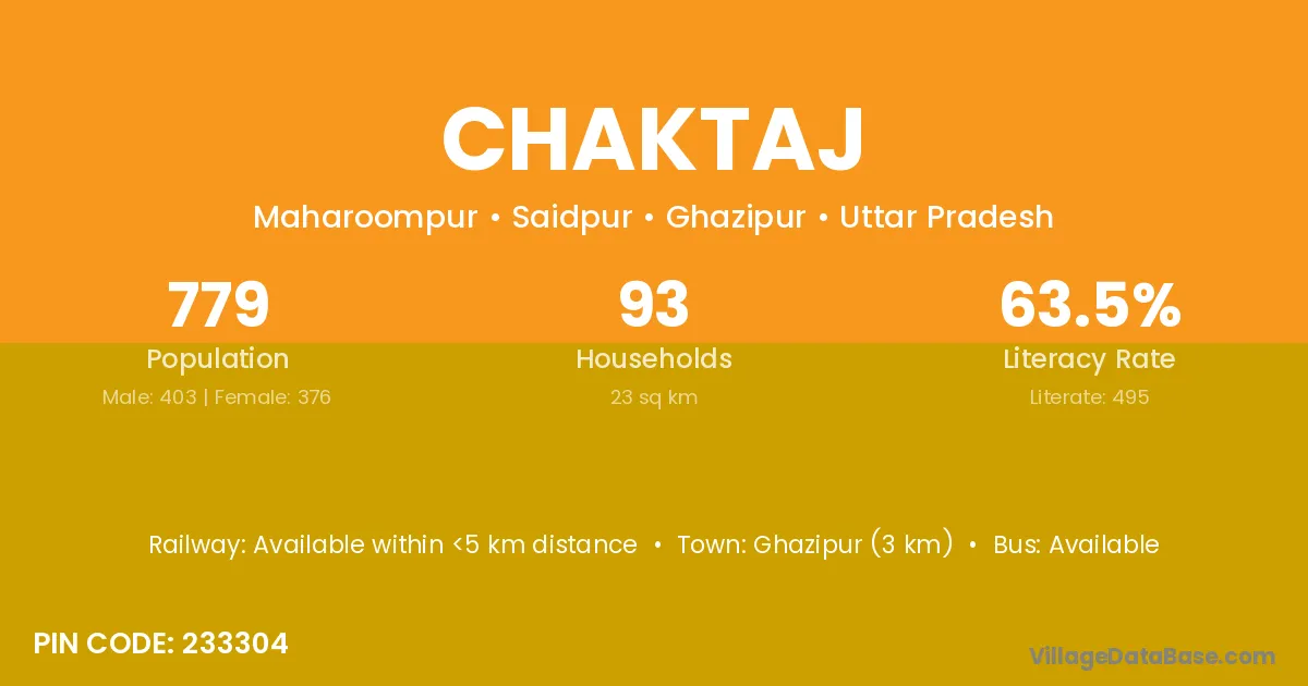 Ghazipur (3 km) is the nearest town to Chaktaj village for major economic activities and is located approximately 3 km away.