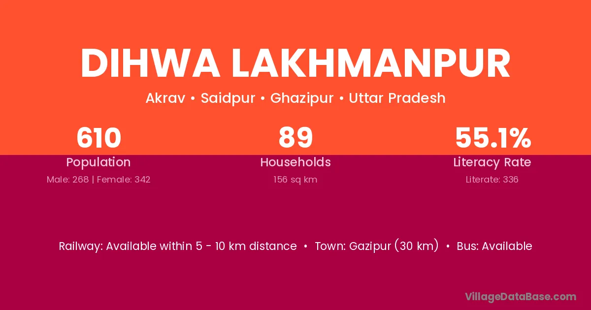 Dihwa Lakhmanpur village has a total population of 610 people, of which 268 are males and 342 are females.