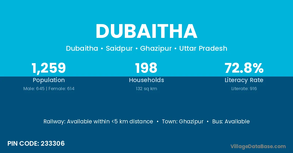 Ghazipur is the nearest town to Dubaitha village for major economic activities