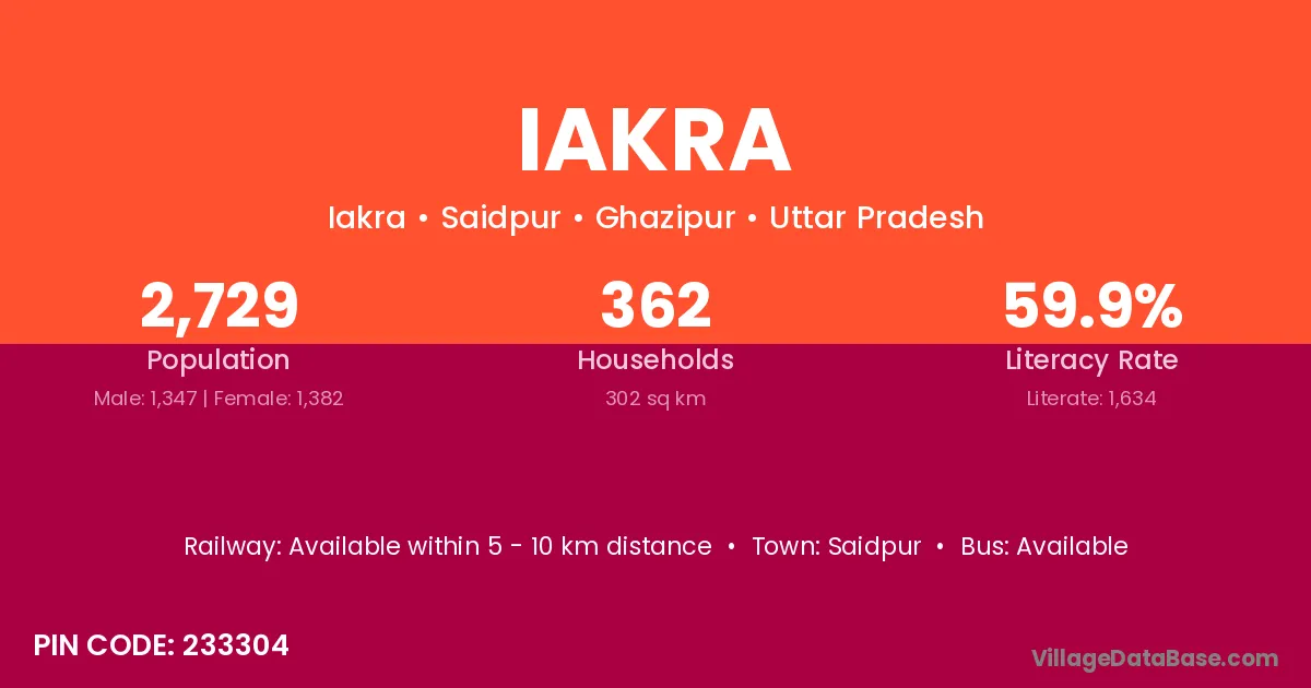 Iakra village is located in the Saidpur Tehsil of the Ghazipur district in Uttar Pradesh .