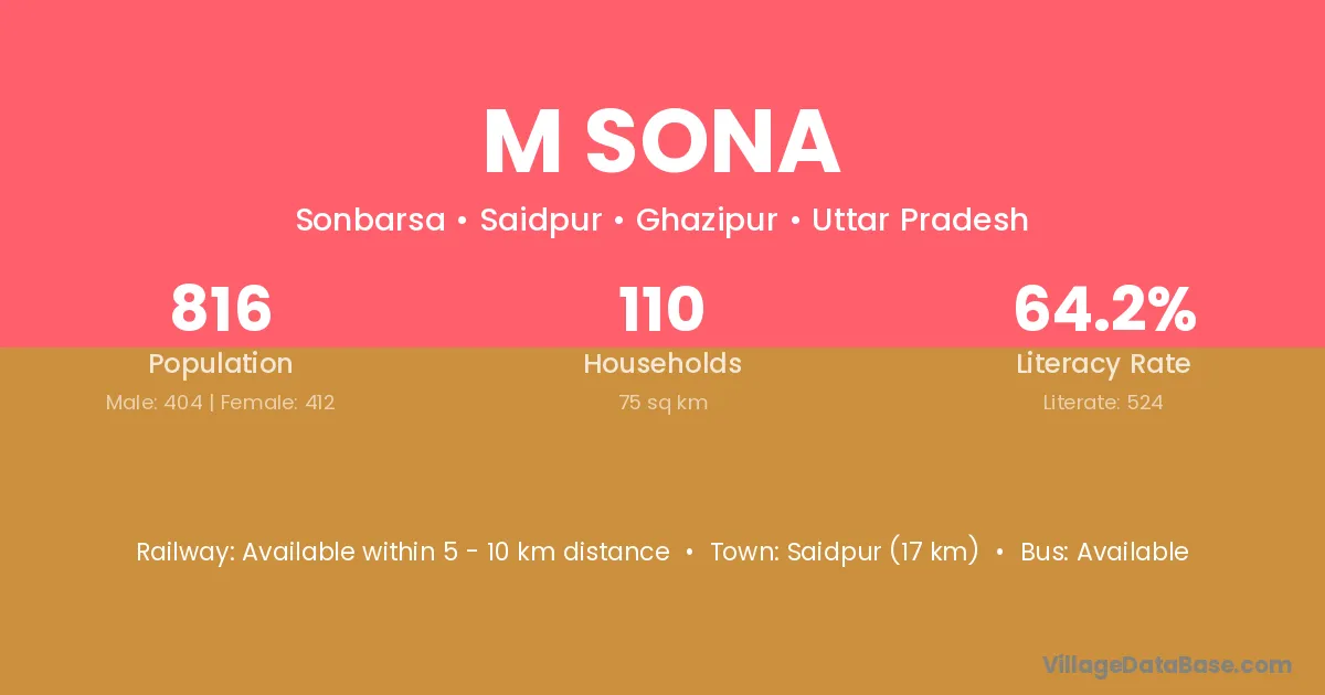 Saidpur (17 km) is the nearest town to M Sona village for major economic activities and is located approximately 17 km away.