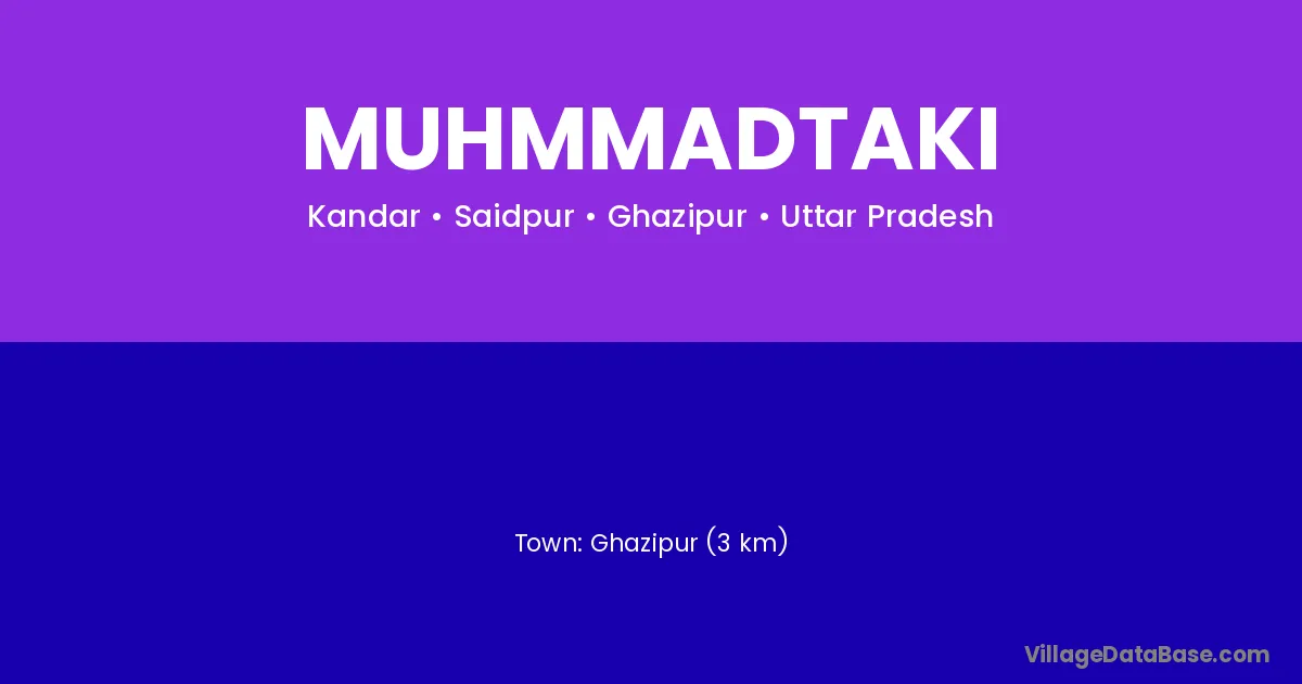 Ghazipur (3 km) is the nearest town to Muhmmadtaki village for major economic activities and is located approximately 3 km away.