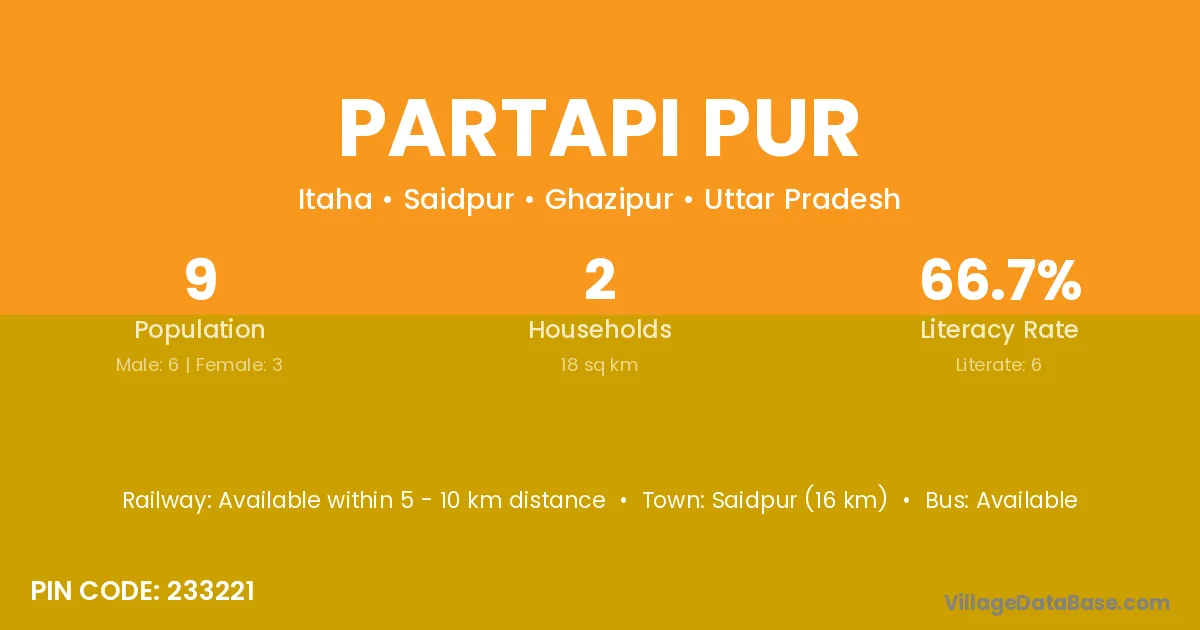 Saidpur (16 km) is the nearest town to Partapi Pur village for major economic activities and is located approximately 16 km away.