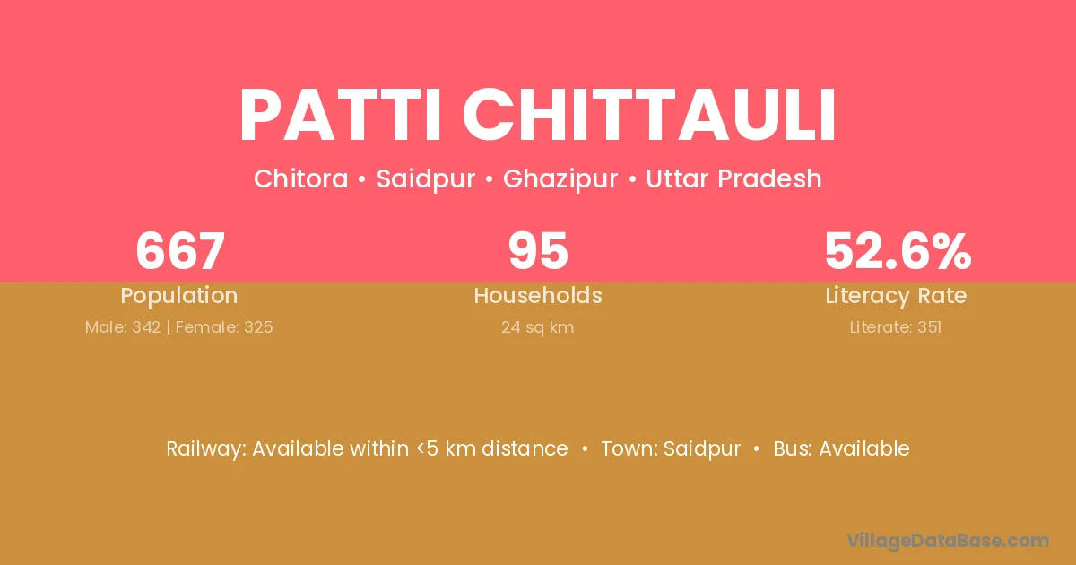 Patti Chittauli village has a total population of 667 people, of which 342 are males and 325 are females.