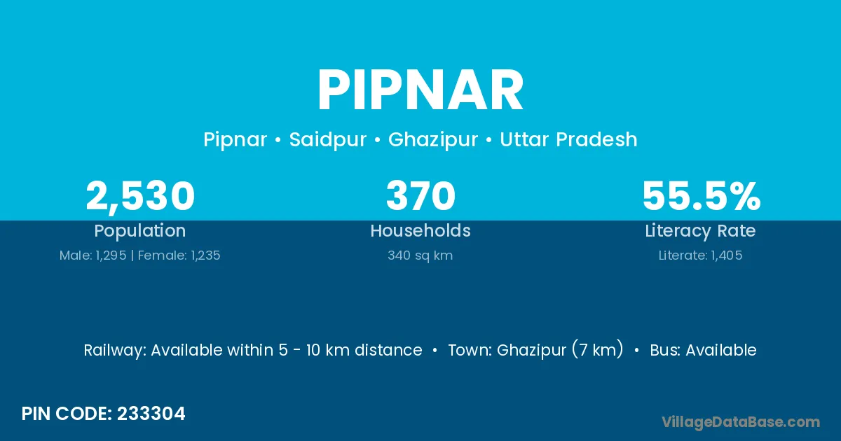Ghazipur (7 km) is the nearest town to Pipnar village for major economic activities and is located approximately 7 km away.