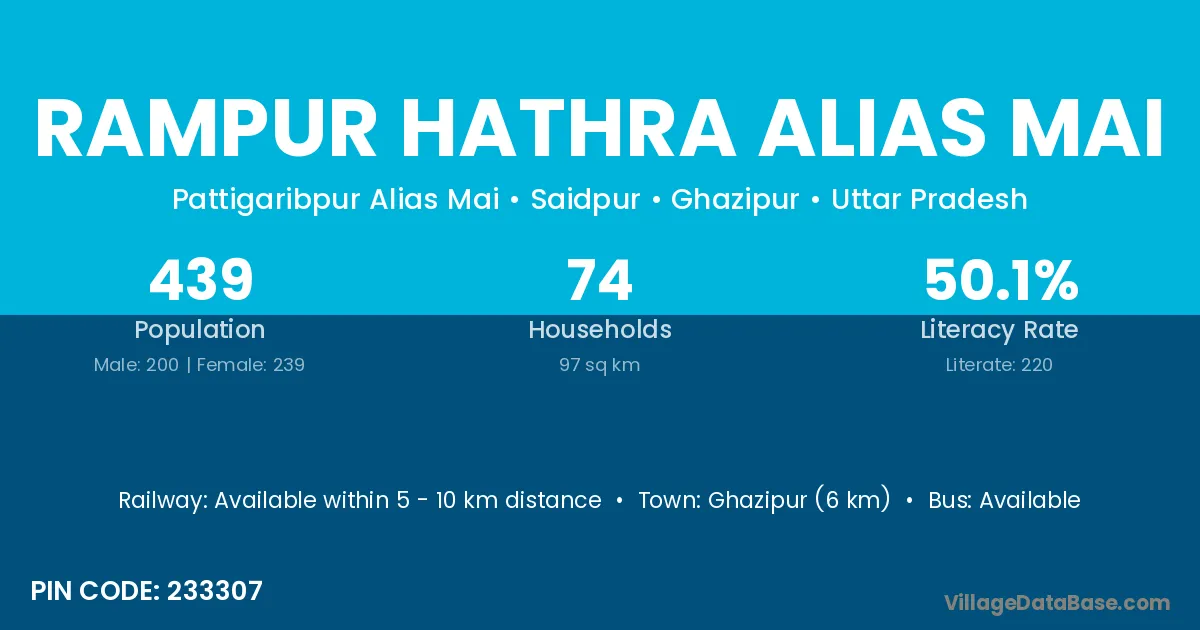 Rampur Hathra Alias Mai village has a total population of 439 people, of which 200 are males and 239 are females.