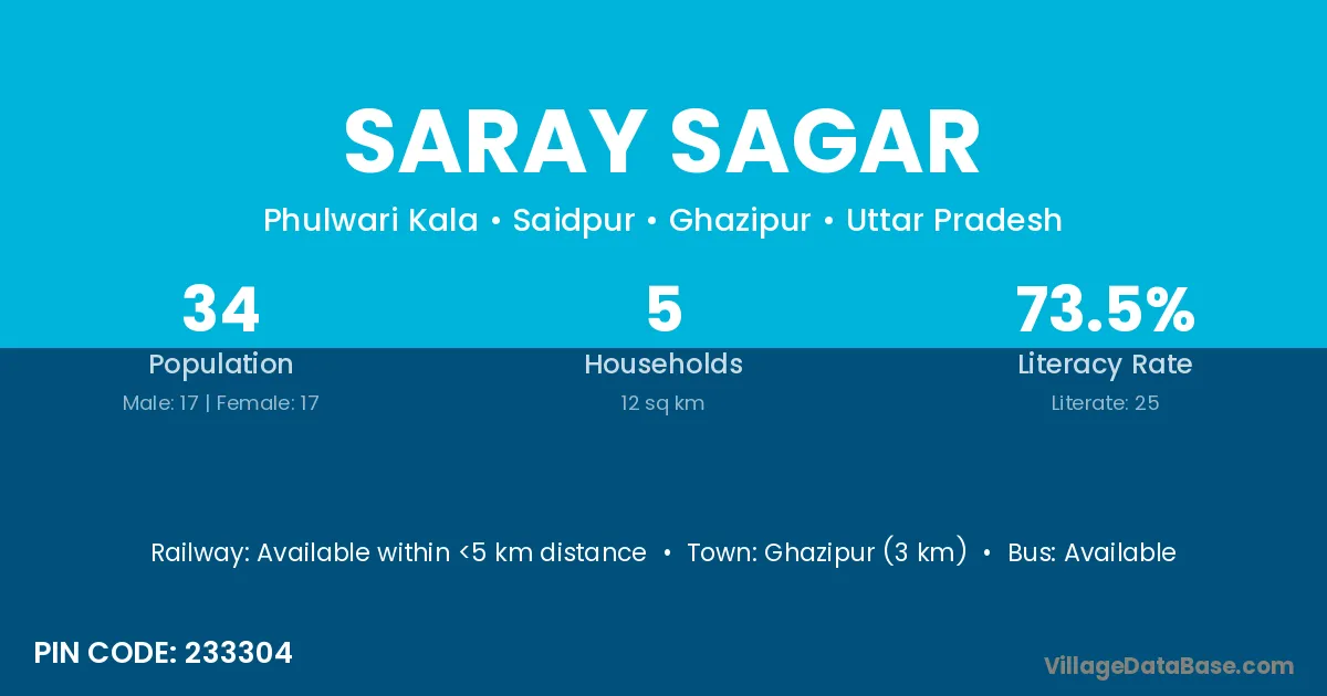 Ghazipur (3 km) is the nearest town to Saray Sagar village for major economic activities and is located approximately 3 km away.