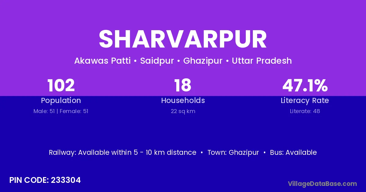 Ghazipur is the nearest town to Sharvarpur village for major economic activities