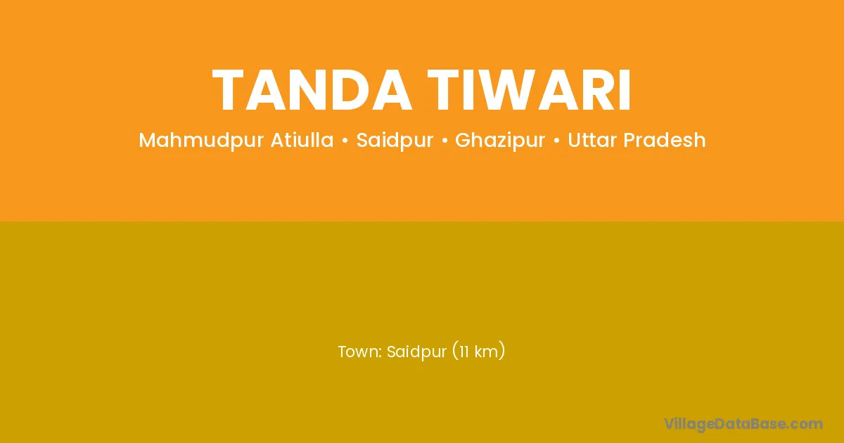 Saidpur (11 km) is the nearest town to Tanda Tiwari village for major economic activities and is located approximately 11 km away.