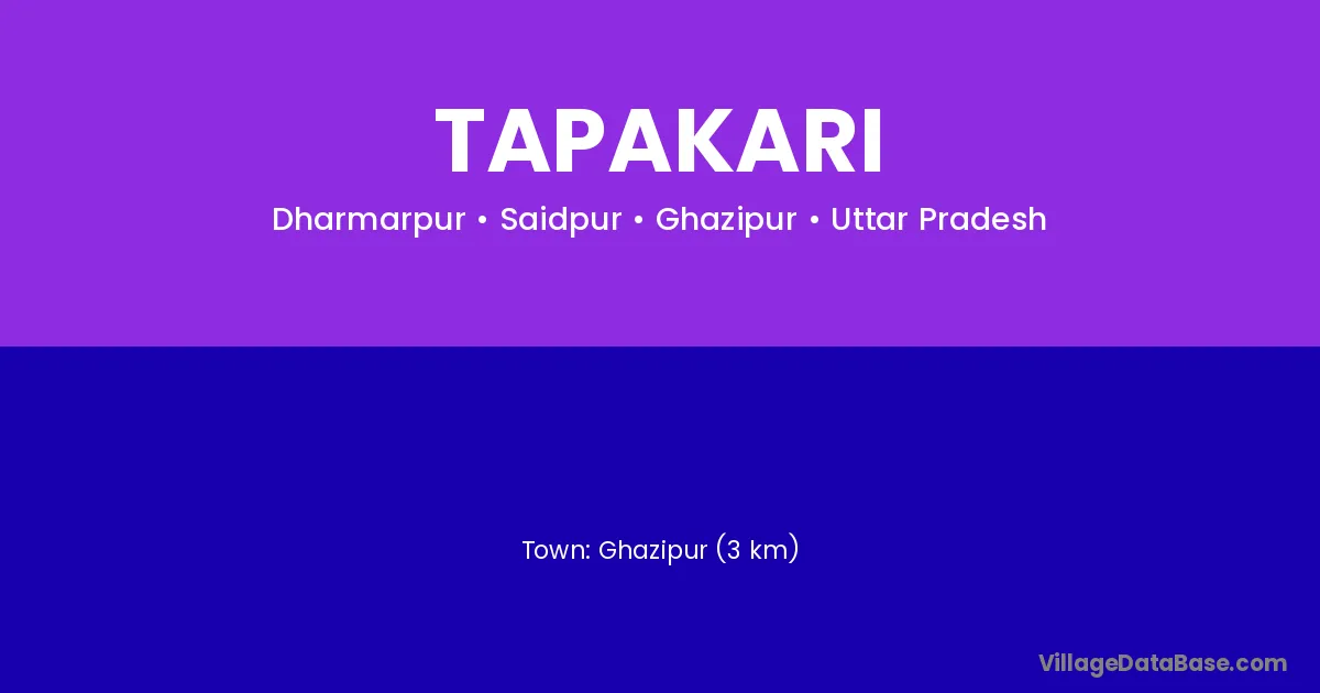 Ghazipur (3 km) is the nearest town to Tapakari village for major economic activities and is located approximately 3 km away.