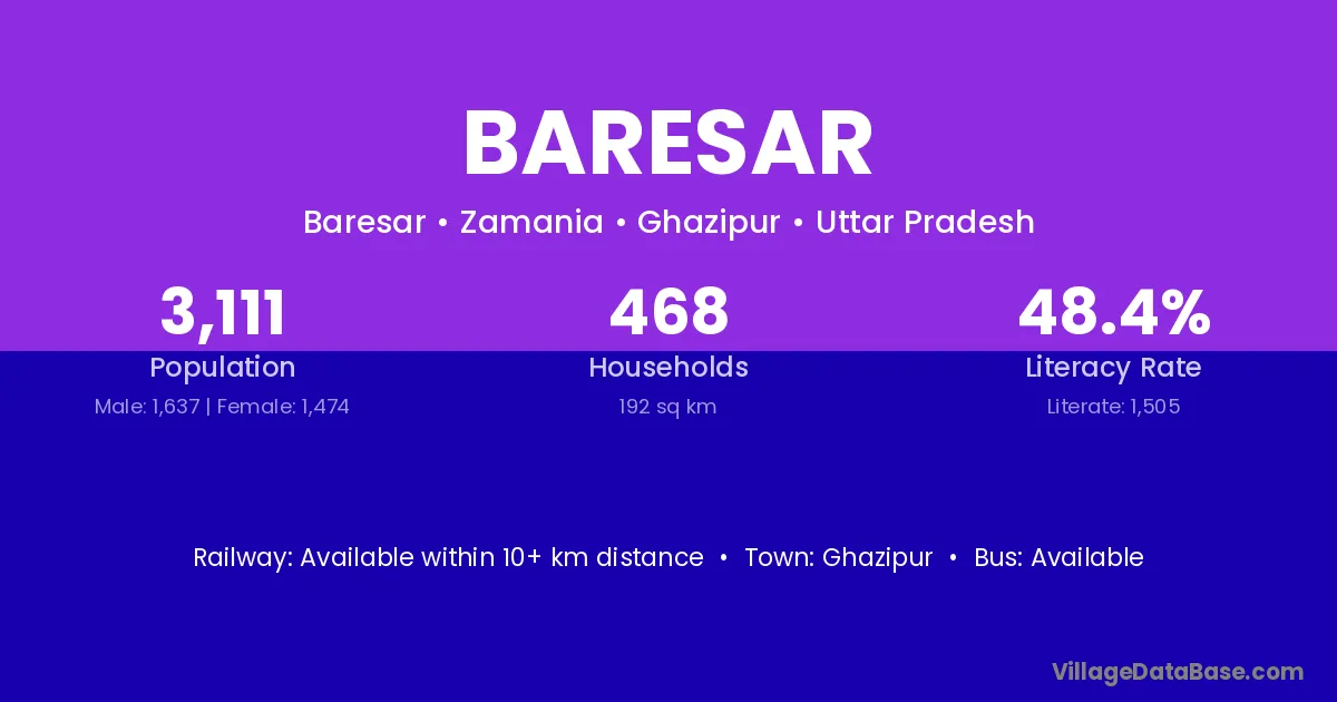 Ghazipur is the nearest town to Baresar village for major economic activities