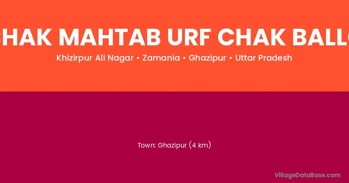 Ghazipur (4 km) is the nearest town to Chak Mahtab Urf Chak Ballo village for major economic activities and is located approximately 4 km away.