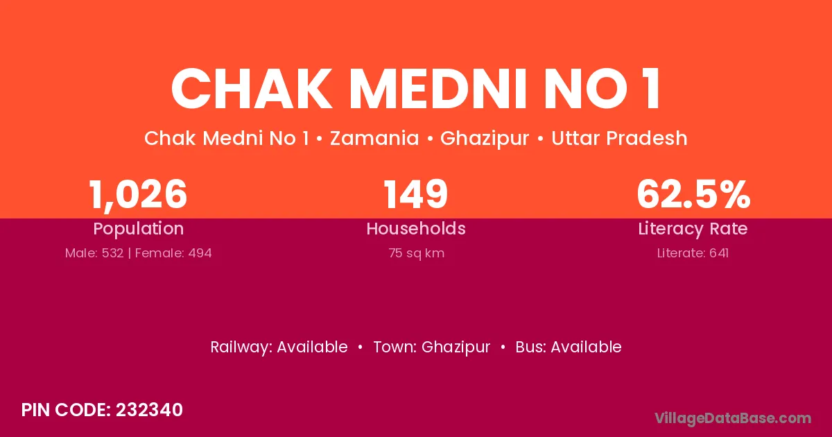 Ghazipur is the nearest town to Chak Medni No 1 village for major economic activities