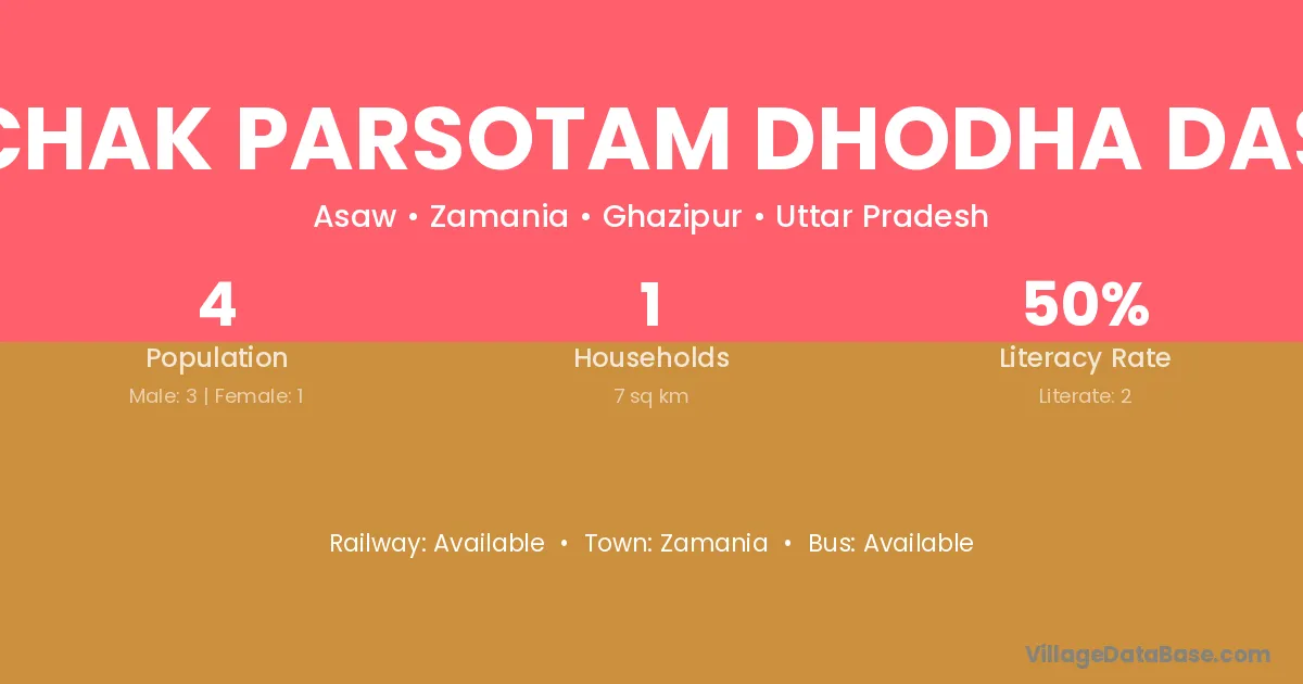 Zamania is the nearest town to Chak Parsotam Dhodha Das village for major economic activities